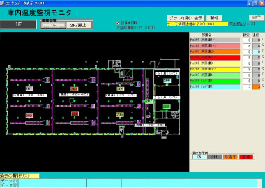- 多くの冷却設備を集中して制御することで、運転状態や各部屋の温度記録を監視できる、集中管理システムを採用しています。また保管商品が無い時間帯などは自動的に冷却温度を上げて無駄を無くすなど、きめ細かく省エネ対策を行う事が出来ます。